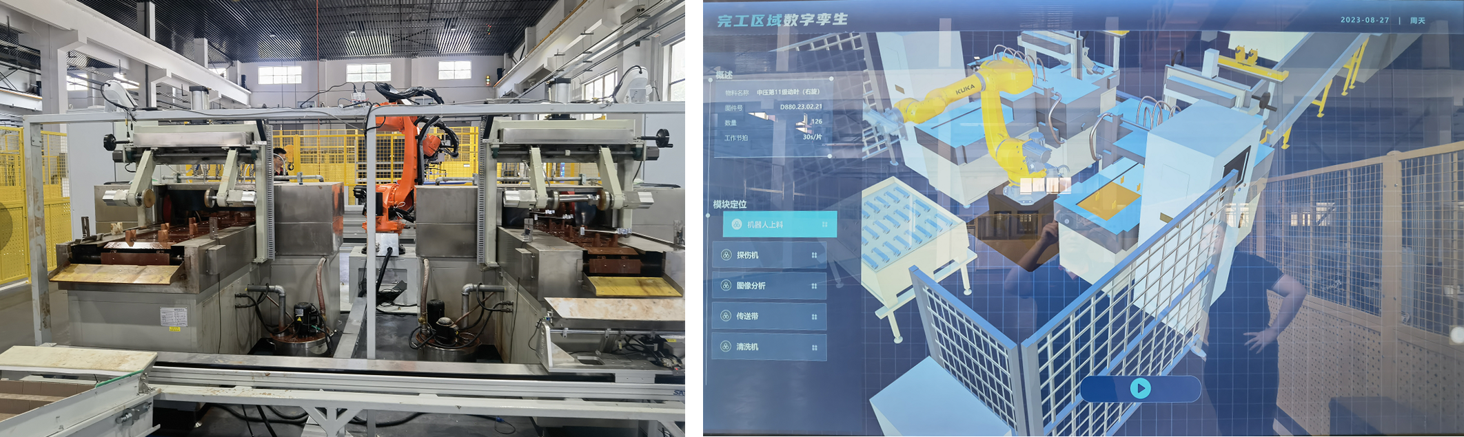 运用物联网技术打通车间各类设备的SCADA设备联网项目,实现动态监管设备实时数据、远程推送加工文件等功能;通过1:1建模结合MES、SCADA、WMS等数据反馈的数字孪生项目,高度可视化地展现大到整个车间、小到某台设备的实时运作状态;