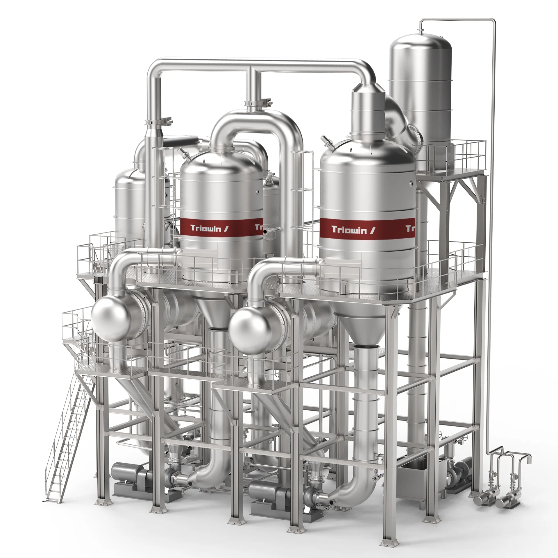 该设备由加热器、蒸发室和循环系统组成,得益于其独特的设计,具有极高的稳定性,并能保证最终产品浓度高,色泽好,品质优。根据产量要求及产品的特性,可选用单效、双效或多效蒸发器。